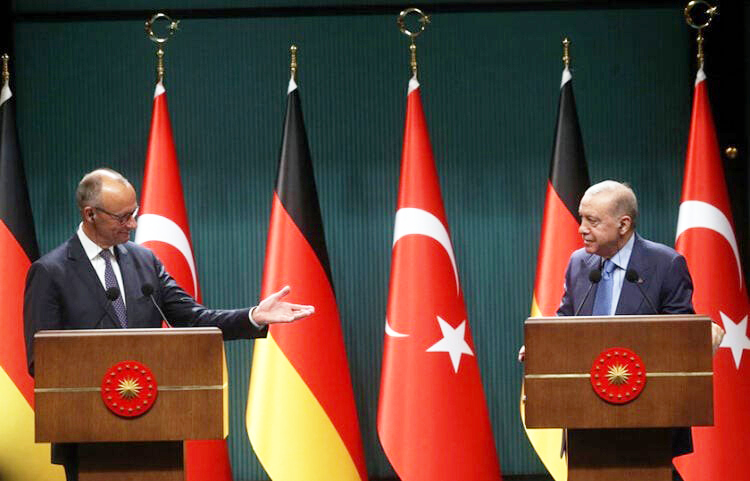 Ο Γερμανός καγκελάριος επισκέφθηκε την Άγκυρα και συναντήθηκε με τον Ταγίπ Ερντογάν στις 30 Οκτωβρίου 2025, ενώ λίγα εικοσιτετράωρα πριν ήταν στην τουρκική πρωτεύουσα ο Βρετανός πρωθυπουργός Κιρ Στάρμερ, ο οποίος πέτυχε την πώληση 20 μαχητικών αεροσκαφών Eurofighter, με πρόβλεψη για ακόμα 20 στο μέλλον.